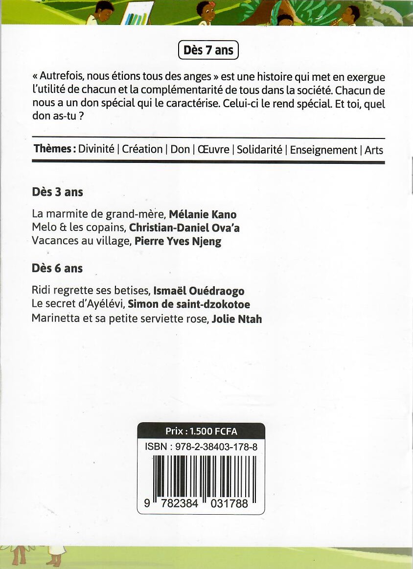 «Autrefois, nous étions tous des anges» est une histoire qui met en exergue l’utilité de chacun et la complémentarité de tous dans la société. Chacun de nous a un don spécial qui le caractérise. Celui-ci le rend spécial. Et toi, quel don as-tu ?